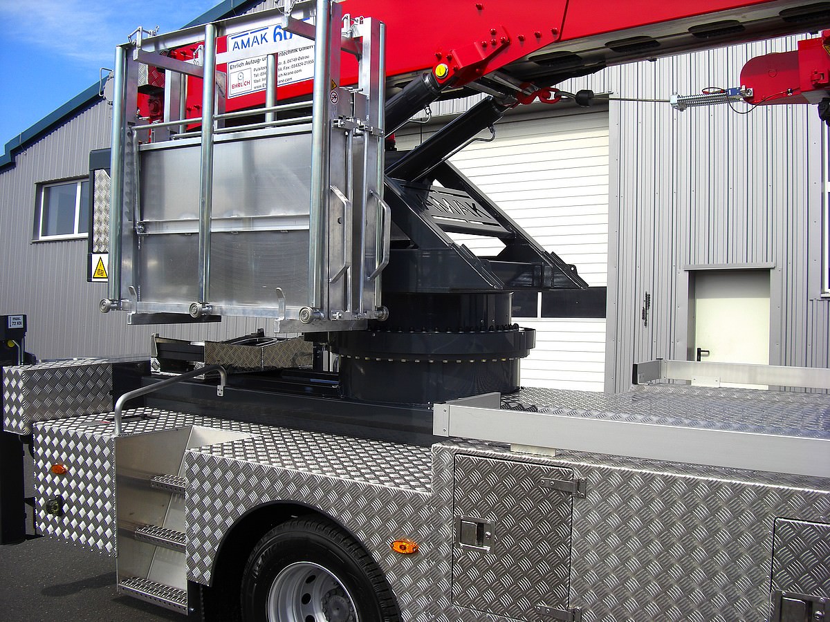 Zusätzlich ist der Kran als Hub-Arbeitsbühne bis zu einer Höhe von 30m nutzbar.
